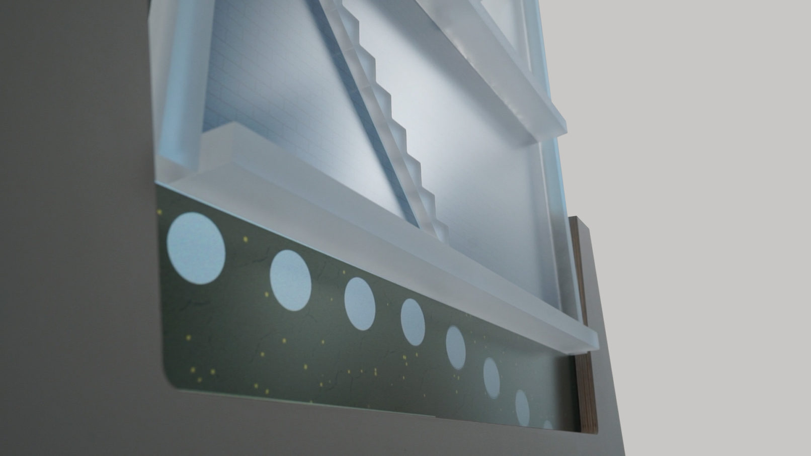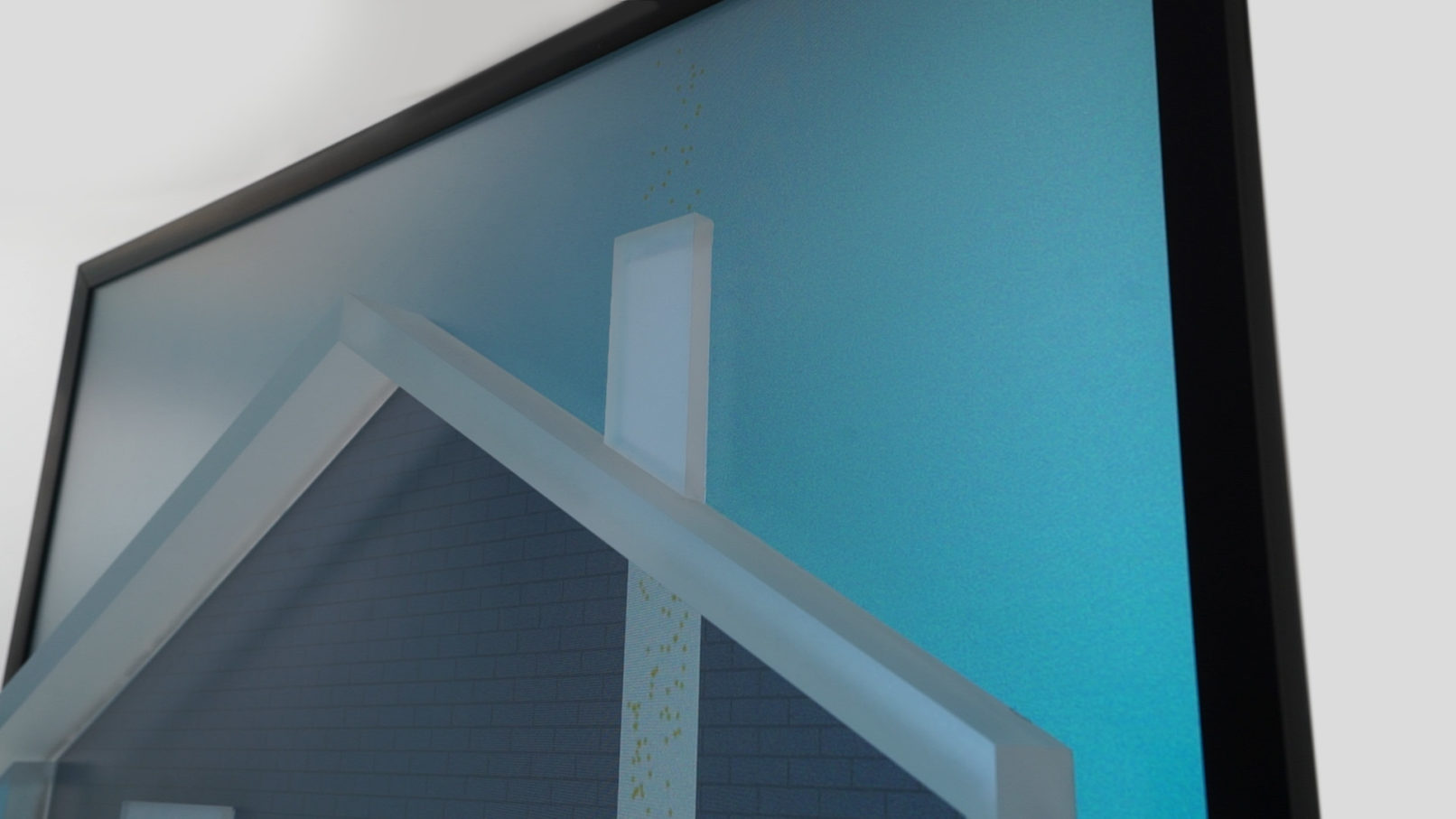 The design reimagines the client‘s classic ‘Radon-Haus’ 3D model. Using the vertical screen, plexiglass elements extend the virtual content into space, while the base integrates seamlessly into the imagery. Animated short films present concise, accessible information about radon exposure, turning a complex scientific topic into an immersive, engaging experience. All components are portable, fitting into a flight case, with a reinforced base ensuring stability for repeated assembly.